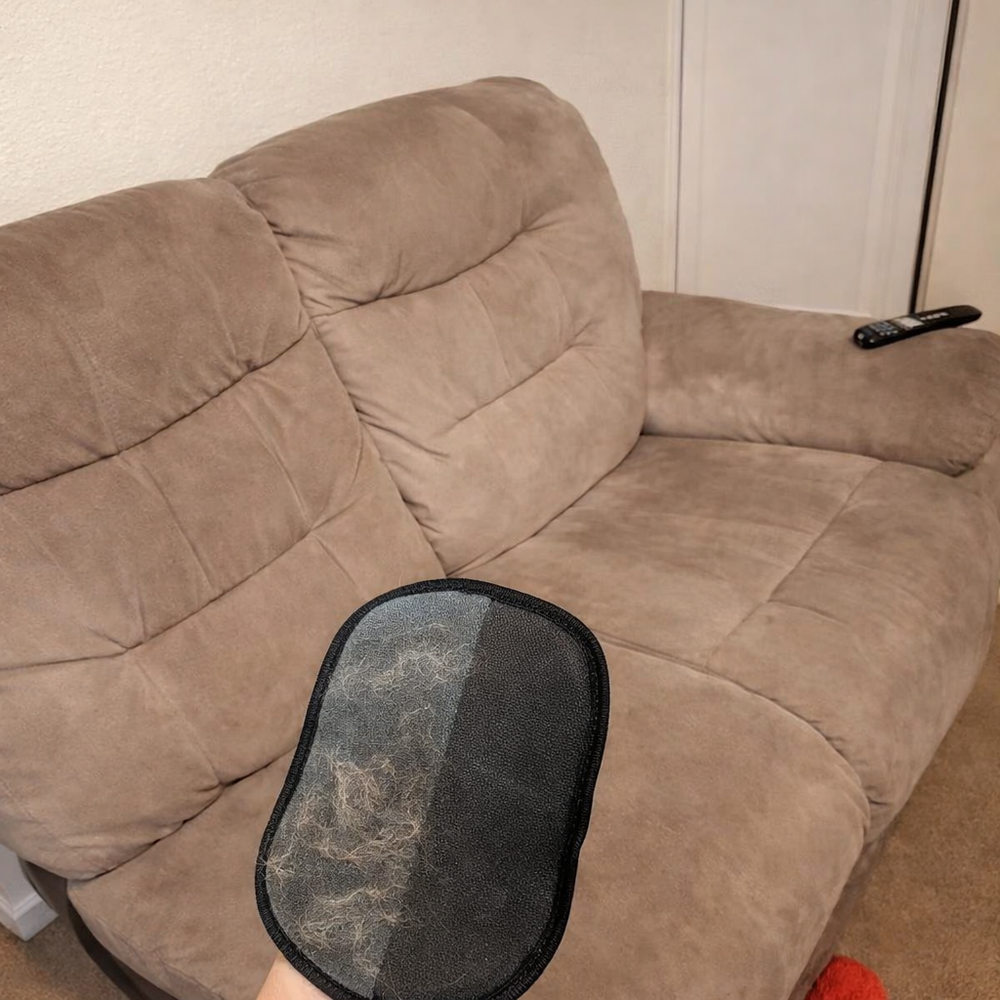 La verdad, me sorprendió muchísimo. Antes usaba rodillos quita pelusa todo el tiempo, pero ahora ya no los necesito. Es así de simple: pasas el guante y queda limpio.